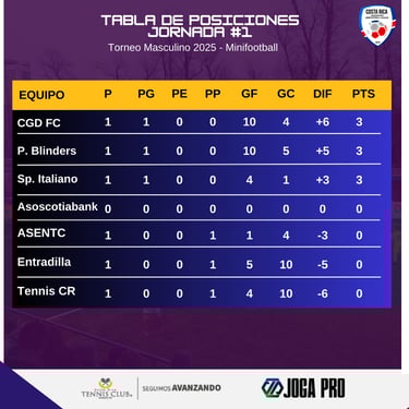 En el inicio de nuestro torneo les dejamos las tablas de posiciones, goleo y asistencias de la Jornada #1
